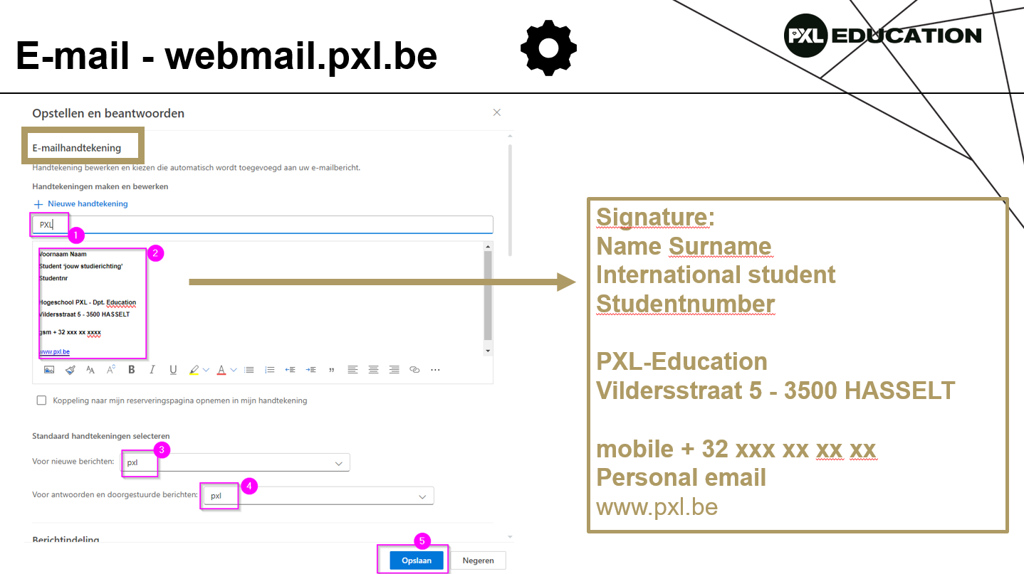 Welcome, international student! TOUR PXL EDUCATION - VIDEO Webmail TimeTable Digital platforms Office 365 Blackboard ACADEMIC PLANNER - 2025/2026 Who is who in team internationalisation? ANNIEK ORYE – COORDINATOR ✉️ anniek.orye@pxl.be Pre – primary education Jochen Didden ✉️ jochen.didden@pxl.be Primary education Catherine RODEN ✉️ catherine.roden@pxl.be Secondary education Adinda DewiT ✉️ Adinda.Dewit@pxl.be Catherine Eyben ✉️ catherine.eyben@pxl.be Who is who in the department of PXL-Education? Dean PXL-Education Michelle DEwulf Vice dean // Pre – primary education Alida Pierards ✉️ alida.pierards@pxl.be Vice dean // Primary education Ans Hubert ✉️ ans.hubert@pxl.be Vice dean // Secondary education CORRY HERMANS ✉️ corry.hermans@pxl.be